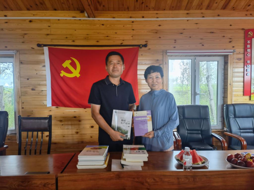 会议最后由老党员代表于泽源督学和吴凤芝教授代表两个党支部向百果园赠送了果树栽培技术等书籍。