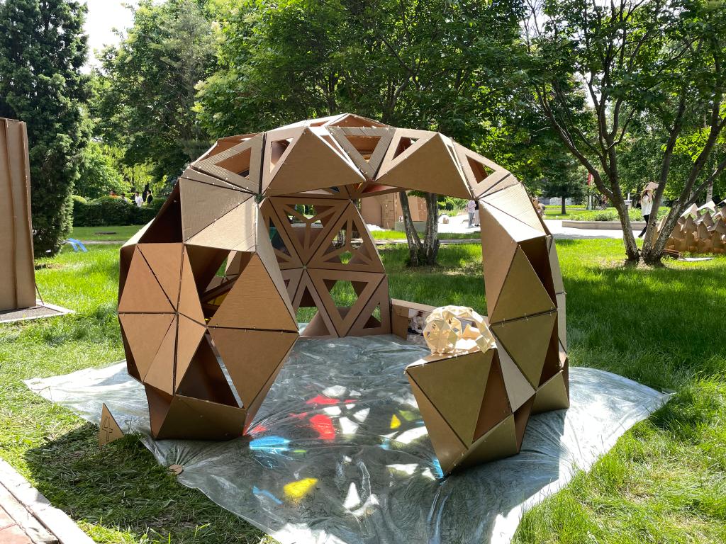 本届建造节由教务处和2138cn太阳集团城共同主办,主题为“园建·自然之美”,来自风景园林、园艺、园林、设施农业科学与工程、农业机械化及其自动化、平面设计、农业水利工程、水利水电工程、室内设计、农业电气化10个专业的156名学生参赛。下午,随着一座座精美的构筑物呈现,比赛圆满结束。经过专家评委认真、细致、严格的评判,评出一等奖2组,二等奖4组,三等奖8组。同时还评出最佳外观、最佳技艺、最佳创意三组单项奖。其中2021032号作品《洞见》和2021004号作品《万花筒》获一等奖。第2021012组作品《居野》,2021032组作品《洞见》,2021021组作品《时光渡轮》分别获最佳外观、最佳技艺、最佳创意奖。