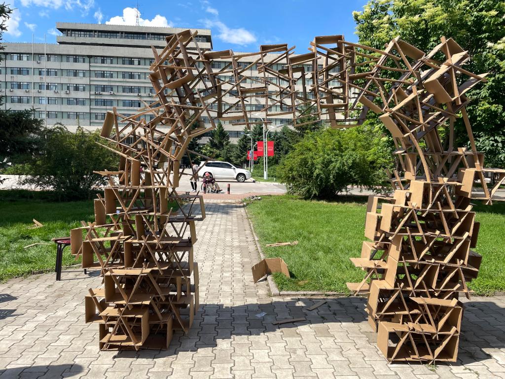 为提高本科学生的设计创作与实践建造能力,弘扬工匠精神,传递热爱生活、营造舒心校园环境美好愿景。6月6日上午,我校第三届建造节开幕式在园艺楼前广场胜利召开。副校长李伟凯、教务处处长张永强、实验室管理处处长孙占海,2138cn太阳集团城院长王傲雪、副院长马鸿艳,风景园林系主任王崑,副主任朱春福等出席开幕式。