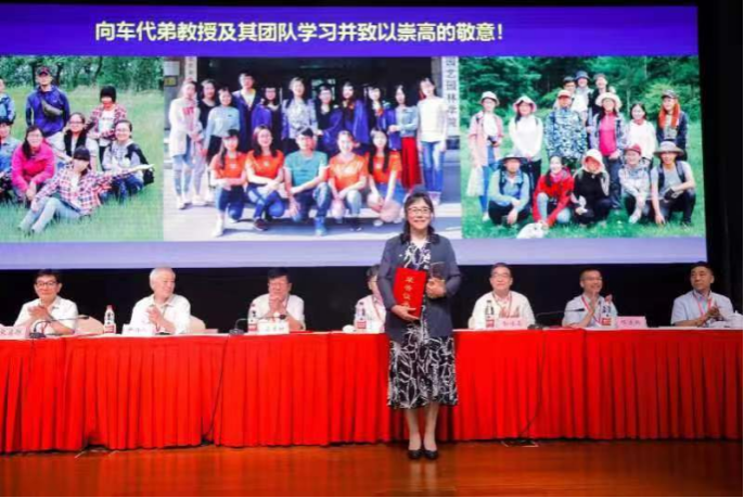 评委会充分肯定了车代弟教授近40年从事的观赏园艺教学、科研和管理工作所取得的成绩。评委会给车代弟的颁奖词是:“扎根龙江一甲子,上善若水,胸怀黑土妆锦绣;躬耕香坊四十秋,大爱无疆,梦筑寒地舞长春。锲而不舍比烈焰,志在北国花多半季;润物无声若仙子,心系桃季情暖三生。代马不慕梧桐雨,弟子常修礼乐风。立德立言,无问西东!”