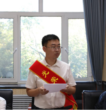 王沛文代表新入职教师发言,他表示一定会以前辈们为榜样,爱岗敬业,潜心教书育人,敢为人先,探索科学前沿。