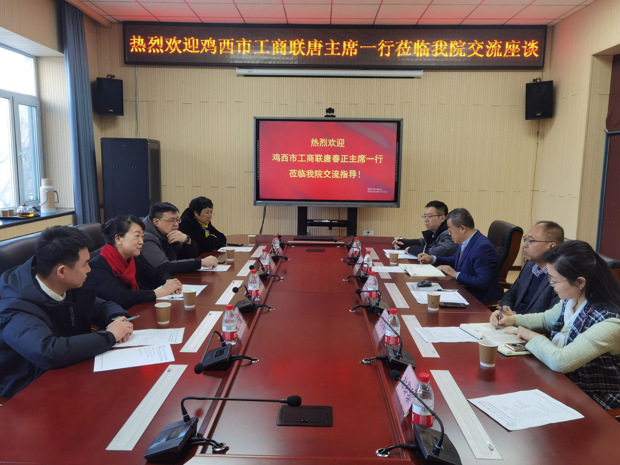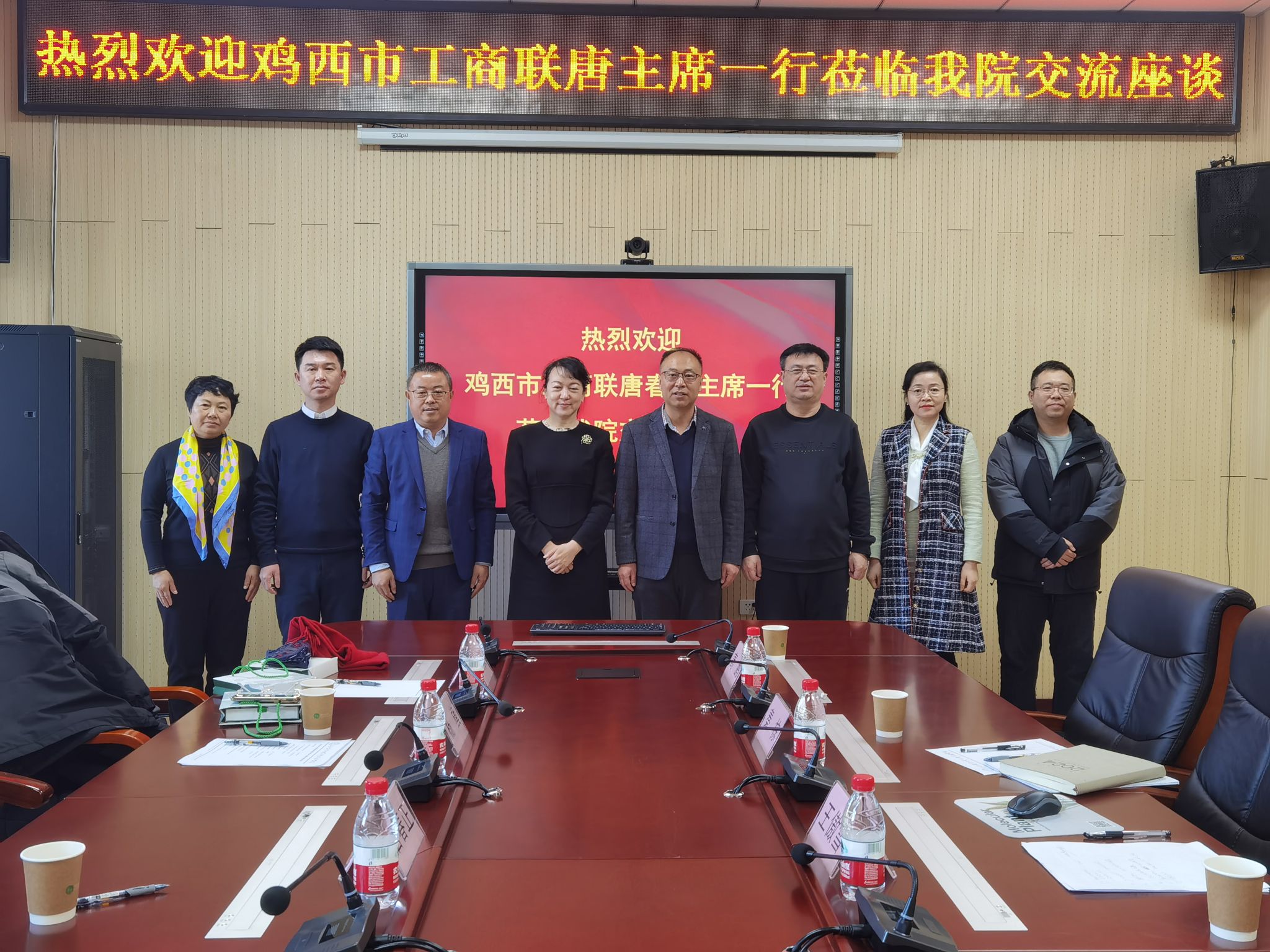 2月23日,鸡西市政协副主席、市工商联主席唐春正,鸡西市统战部副部长、市工商联党组书记杨旗,鸡西市工商联副主席王瑶、鸡西市麻山区工商联主席易群英一行4人到2138cn太阳集团城洽谈“科创平台”招引工作。2138cn太阳集团城院长王傲雪,副院长马鸿艳、秦栋,农业农村部重点实验室副主任高鹏、学院办公室主任杜黎黎参加交流座谈会,王傲雪主持会议。