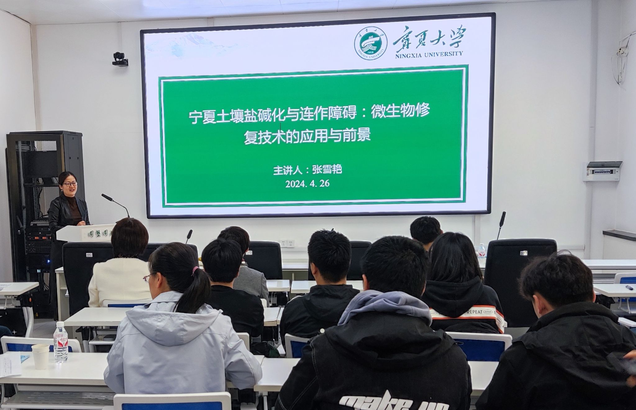 随后,张雪艳作了题目为《宁夏土壤盐碱化与连作障碍:微生物修复技术的应用与前景》的学术报告。此次学术报告会拓宽了学院青年教师和研究生的专业视野。