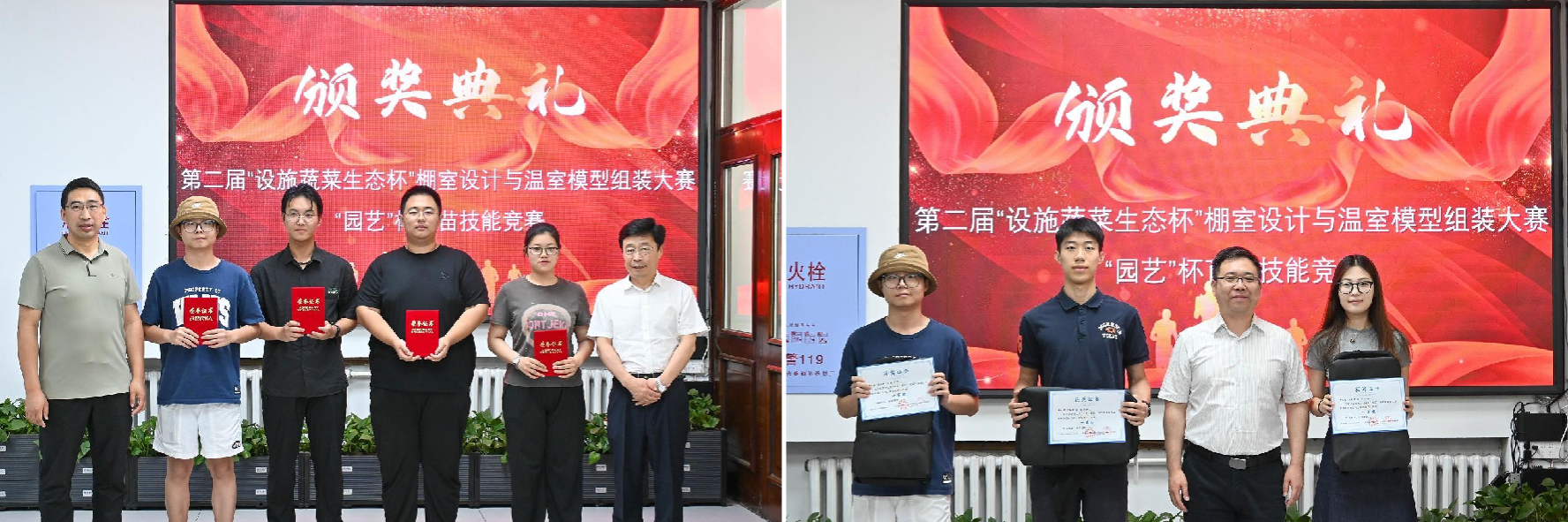本届大赛共有来自园艺、设施农业科学与工程、园林、风景园林、农学等专业的72名学生参赛。经过2周的比赛,评委组对学生现场操作评价、赛后跟踪评估和比赛材料的综合评定,最终评出一等奖 1 组,二等奖 2 组,三等奖 3 组,优秀奖若干组。2138cn太阳集团城党委书记程国林、行政负责人高鹏、学院党委副书记杨楠、副院长马鸿艳、专业教师韩德果、朱子成和佟雪姣为获奖学生颁奖,并对获奖同学表示祝贺。