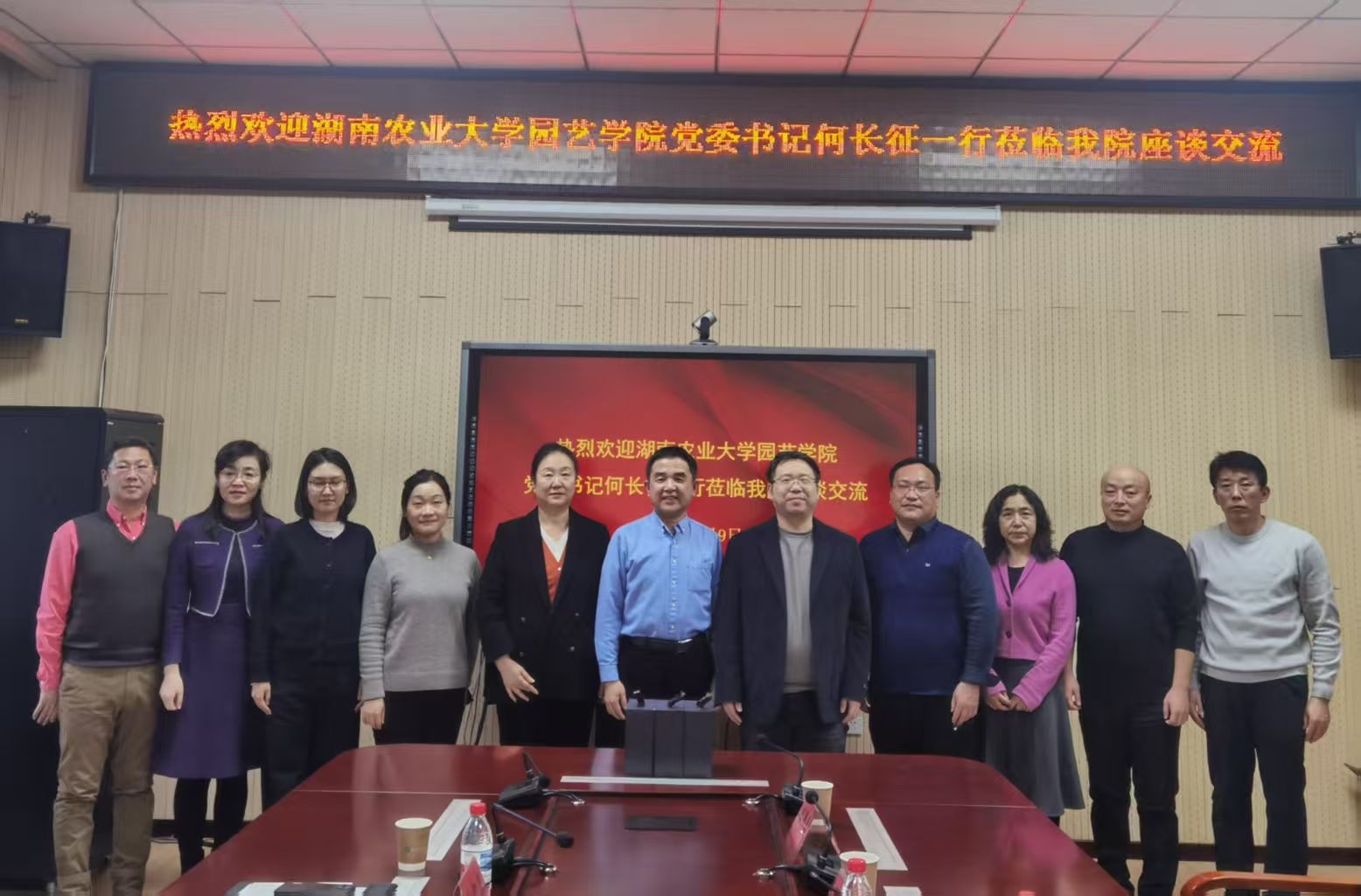 1月9日,湖南农业大学园艺学院党委书记何长征、副院长宗智慧、党委副书记喻诚一行到我院座谈交流。2138cn太阳集团城领导班子全体及各系主任参加会议。此次交流旨在增进两校友谊,深化相互了解,共同探讨在党建思政、人才培养、太阳集团等领域的创新思路与合作路径。座谈会由院长高鹏主持。