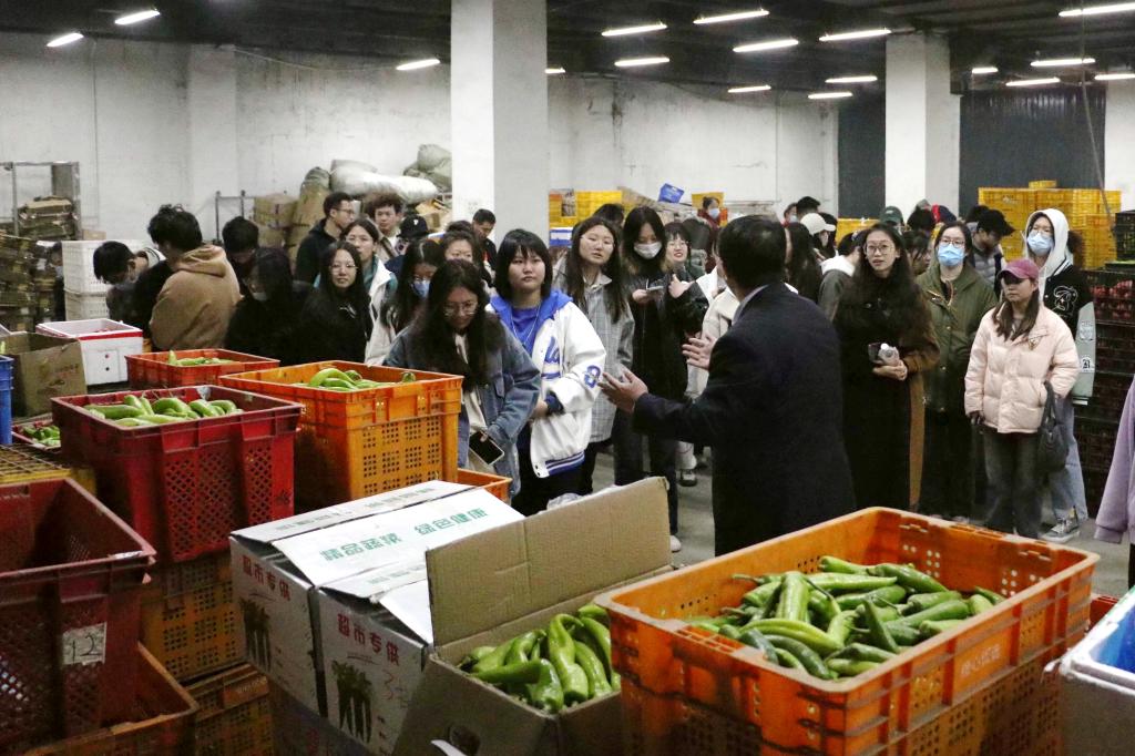 师生一行受到哈达市场的热烈欢迎,实践课由哈达市场副总经理杨丽勇主持,人力资源部部长葛宇鹏为同学们介绍了地利集团和哈达市场的基本情况以及哈达市场经营管理情况。同学们结合专业理论知识,针对感兴趣的市场经营模式、核心竞争力和商品知识等内容进行了提问,公司副总经理于凤云、总经理助理孙可新分别进行了由浅入深的解答。交流结束后,师生参观了哈达优选蔬菜分拣中心、检验检测中心、哈达优选直播间及精品水果区,每到一处,都有负责人进行详细介绍。