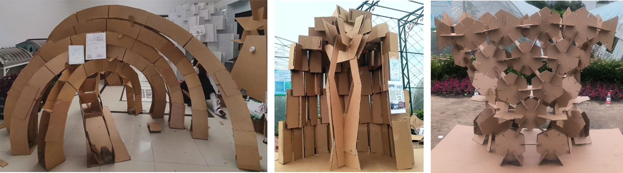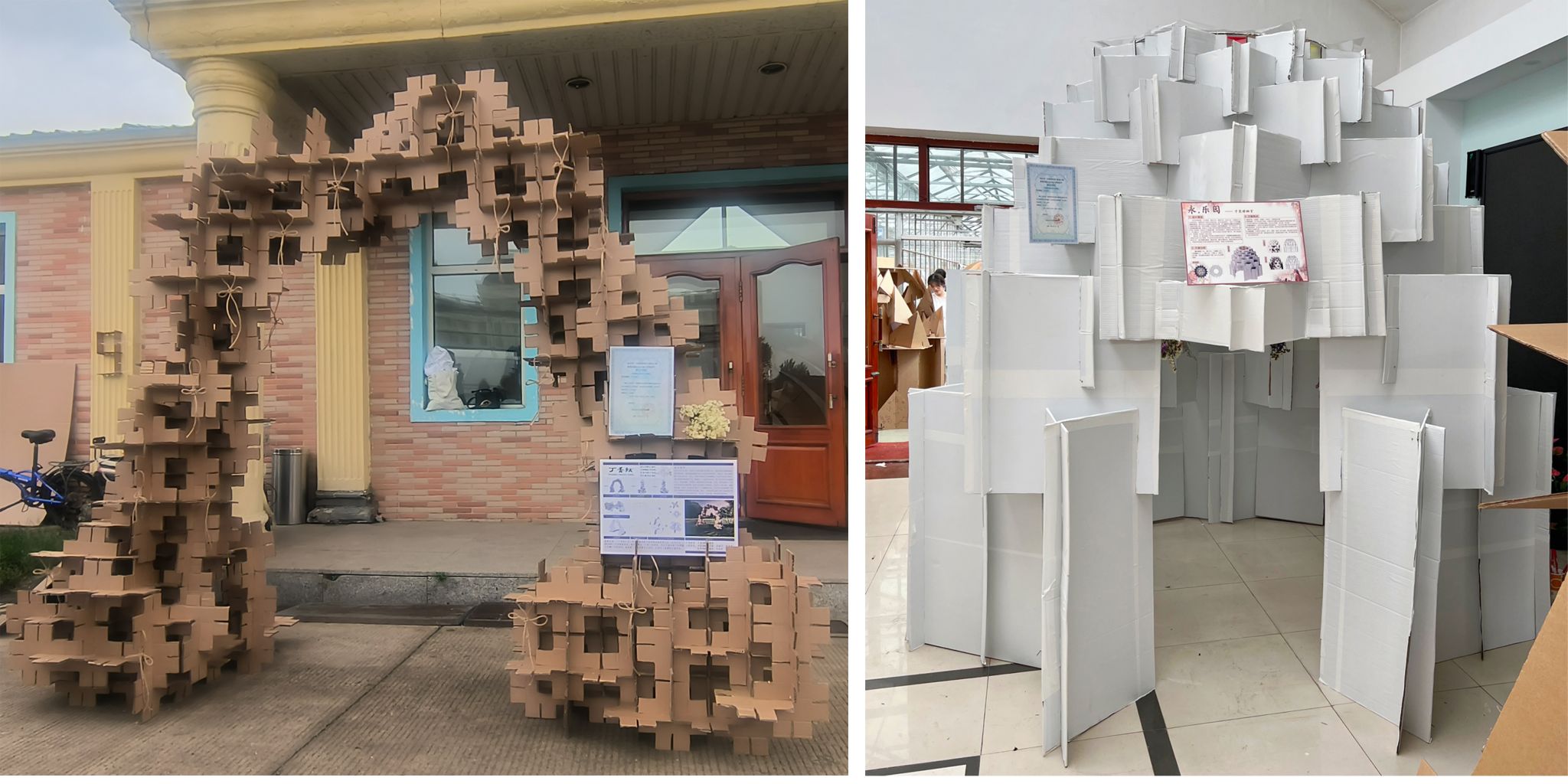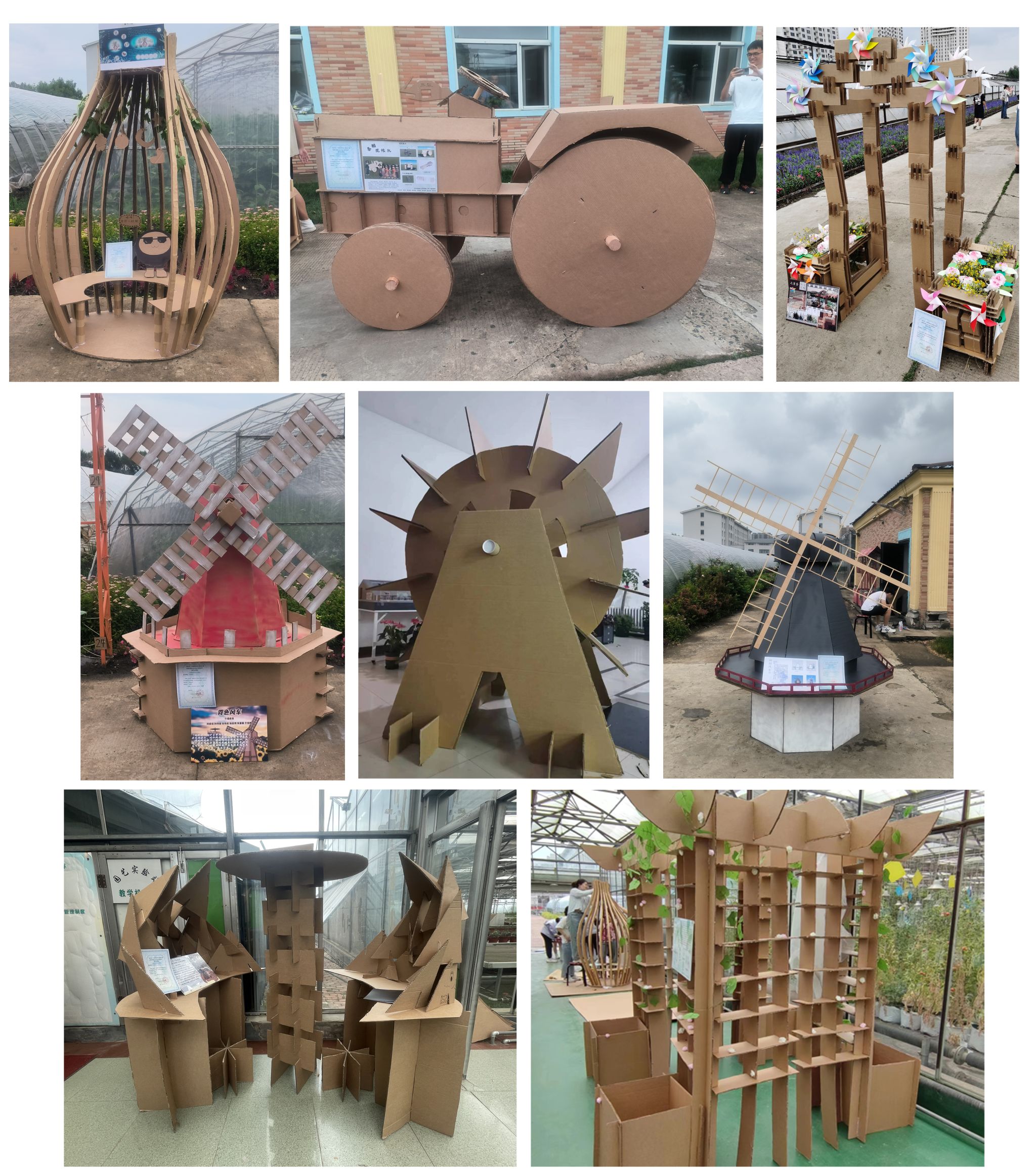 本次比赛共征集31组作品,要求参赛队员以瓦楞纸为主材设计并建造适合农业园区的景观建筑或小品。随着一座座精美的构筑物呈现,建造环节宣告完成。经过专家评委细致、严格的评判,《丁香结》《永.乐园》两组作品获一等奖,《与风行》等五组作品获二等奖,《七里香》等八组作品获三等奖。作品《 听见自然的声音 》、《嘉荫亭》、《立冬》分别获得优秀创意、优秀外观、优秀技艺奖。