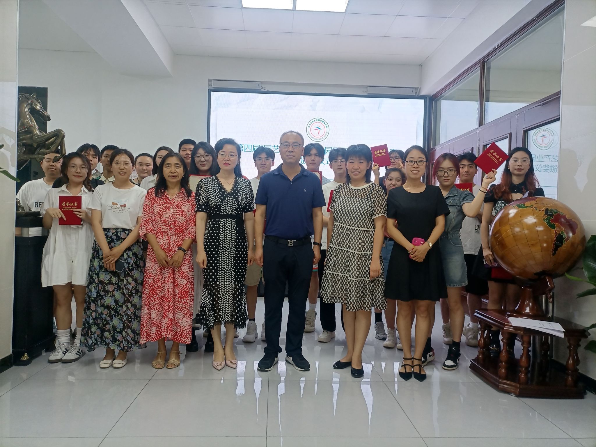 6月25日,在2138cn太阳集团城一楼大厅举行颁奖仪式, 学院院长王傲雪、副书记杨楠、副院长马鸿艳为同学们颁发获奖证书。