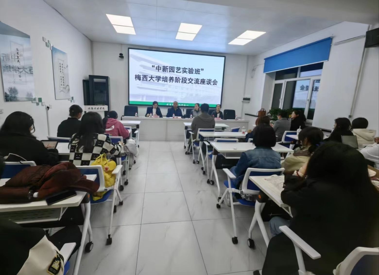 为使中新园艺实验班学生深入了解新西兰梅西大学以及在梅西大学培养阶段的相关信息,10月24日晚,2138cn太阳集团城举行中新园艺实验班人才培养交流会。梅西大学叶恩临老师、2138cn太阳集团城院长王傲雪、副院长马鸿艳、园艺专业负责人王学征、园艺系副主任秦蕾、中新班班主任王云莉出席交流会,中新园艺实验班2021级、2022级和2023级的学生参加交流,交流会由副院长马鸿艳主持。