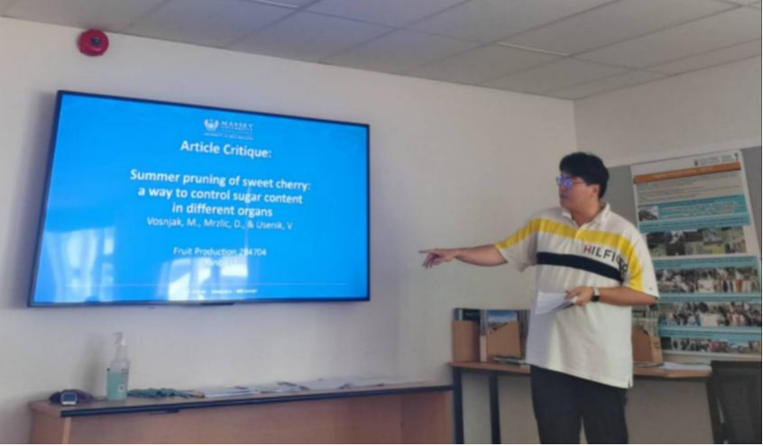 李彦博为我院首批中新园艺实验班“3+2”本硕连读培养项目学生,目前在新西兰梅西大学攻读硕士学位,研究方向为蔬菜生产。到梅西大学后,李彦博顺利完成了学术写作、作物改良、作物采后处理等课程,在Dr. Svetla和我校访问学者佟雪姣老师的指导下,参与了“叶面喷施硅肥对草莓生长及果实品质影响”的研究项目,经常参加当地园艺协会组织的果园和蔬菜农场实地考察,与农场经理和随行教授充分交流,逐渐适应全英文的教学环境,提升了英文学术表达能力和国际视野。