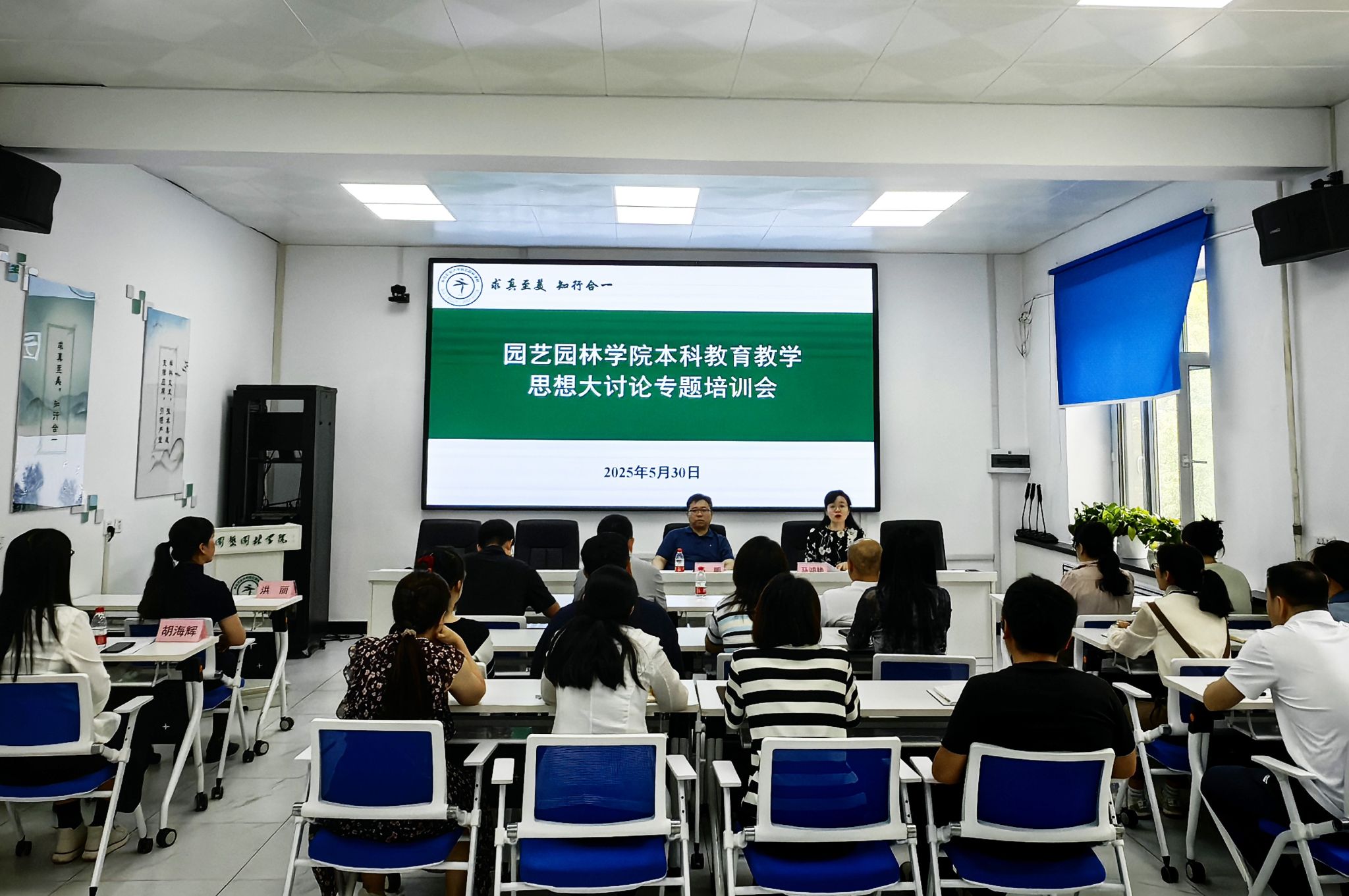 为全面贯彻全国教育大会精神和《教育强国建设规划纲要(2024—2035年)》部署,落实我校本科教育教学思想大讨论工作要求,加强“园味”课程思政建设,提升青年教师教学创新能力,5月30日下午,2138cn太阳集团城邀请黑龙江省教学名师、省级教学成果特等奖获得者胡海辉和黑龙江省课程思政优秀案例获得者洪丽做本科教育教学思想大讨论专题培训。学院院长高鹏、副院长马鸿艳、各专业负责人、青年教师以及教务科、本科实验中心负责人参加活动。培训会由马鸿艳主持。