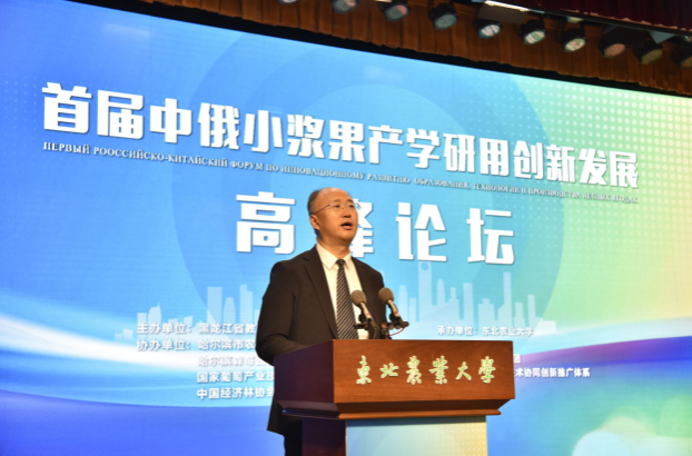 为深化中俄教育交流,促进国际产学研用合作高质量发展,加力构筑我省向北开放新高地,总结展示2138cc太阳集团与俄罗斯多家科研机构在小浆果领域的长期合作成果,首届中俄小浆果产学研用创新发展高峰论坛于6月16日哈洽会期间在我校召开。会议由黑龙江省教育厅和黑龙江省林业和草原局主办,2138cc太阳集团承办,哈尔滨市农业科学院、黑龙江省农业技术推广站会等八家单位协办。黑龙江省教育厅副厅长冯伟泉,黑龙江省林业和草原局总工程师宋国忠,2138cc太阳集团校长付强,俄罗斯科学院副院长兼远东分院院长库里钦·尤里·尼古拉耶维奇院士,俄罗斯科学院远东分院副院长拉林·维克多·拉夫连基耶维奇院士,以及来自中俄的300名教授、专家、师生等出席了本次会议。