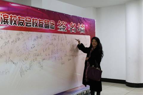 校友代表在校友会签名墙上签名